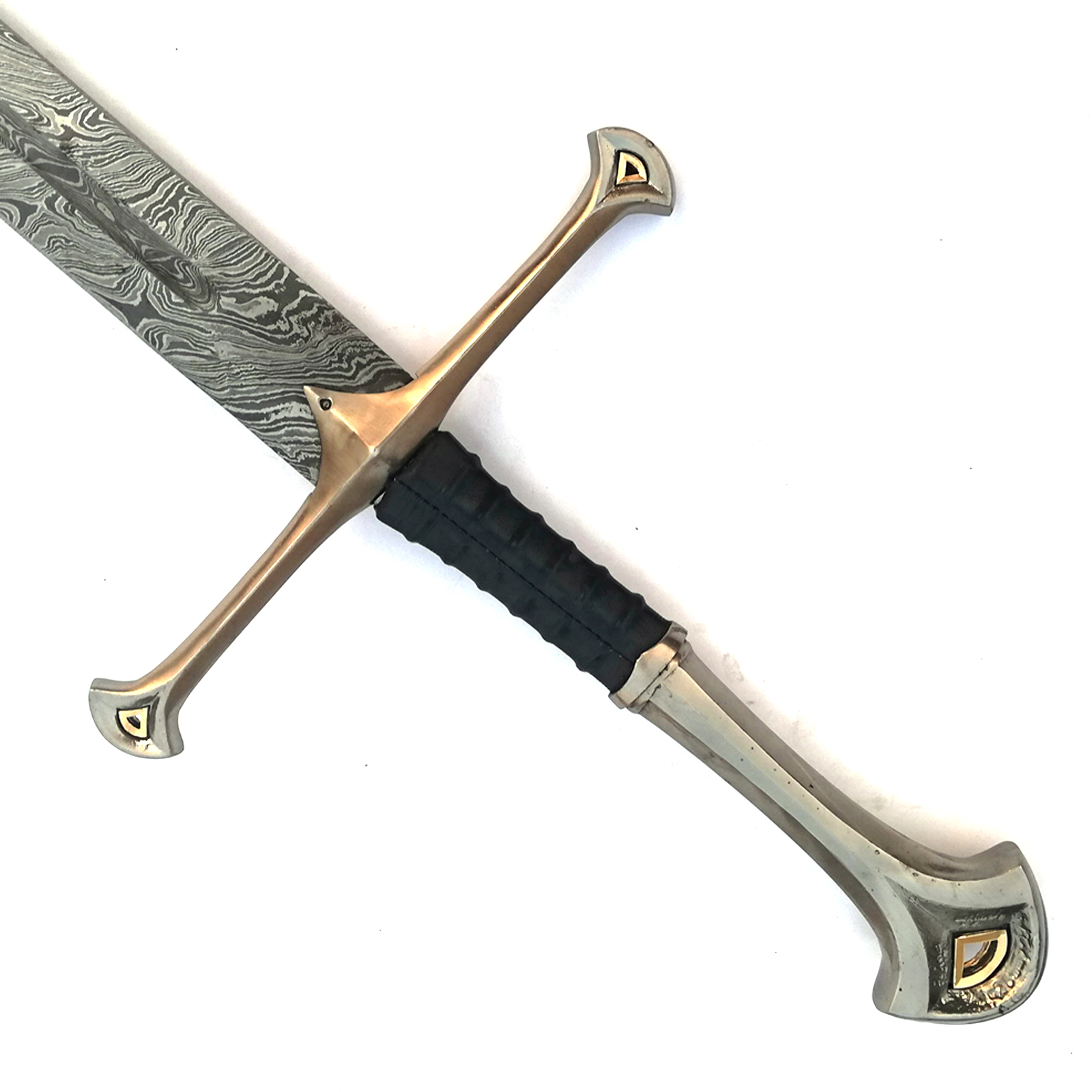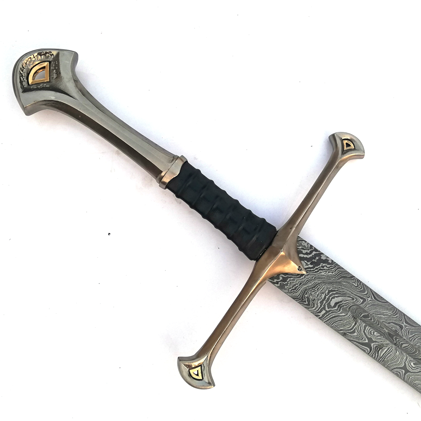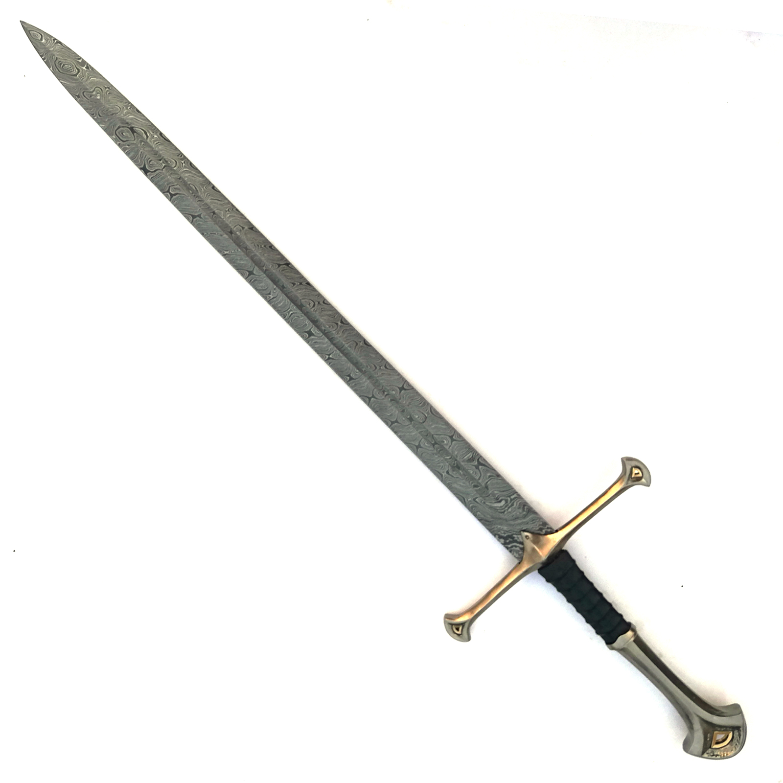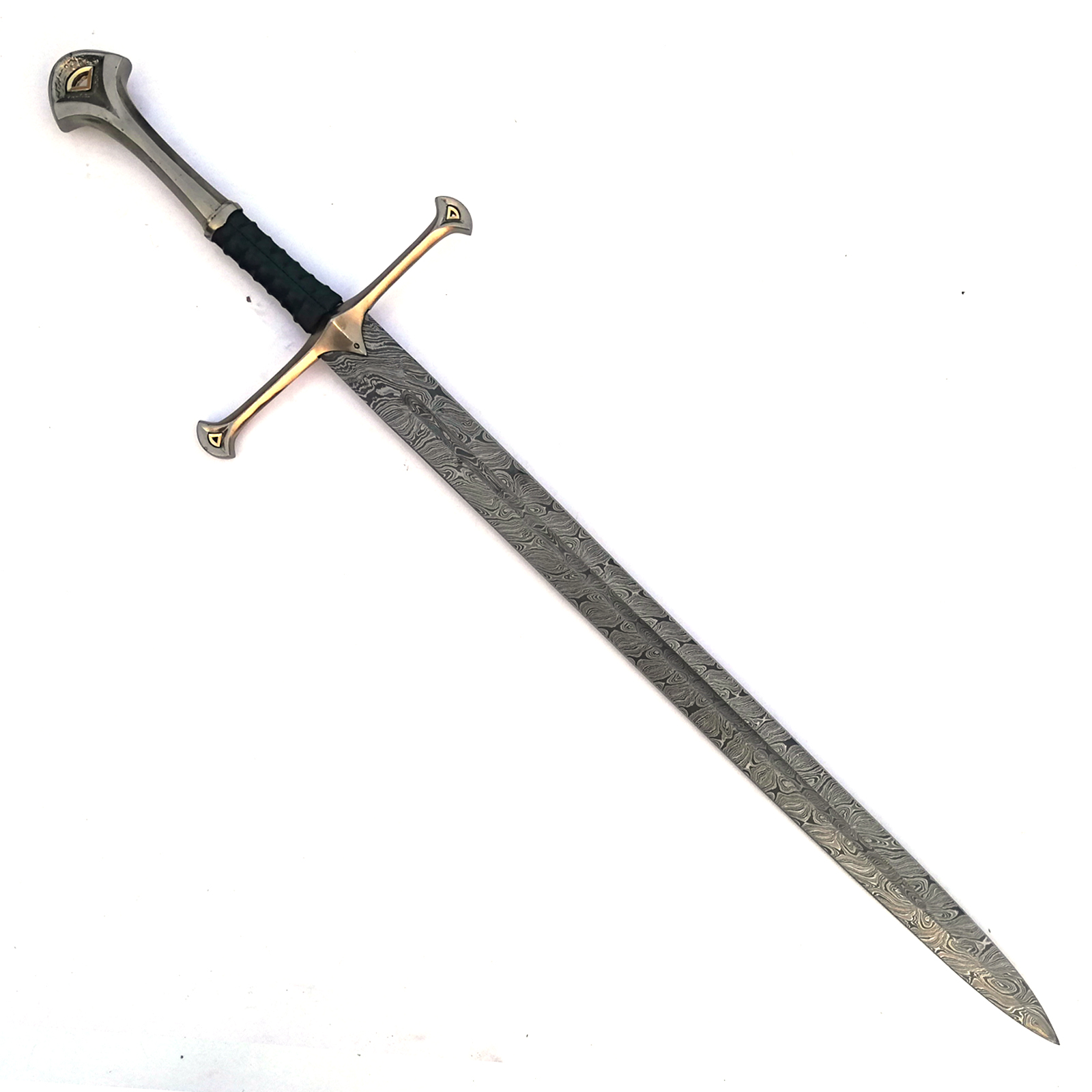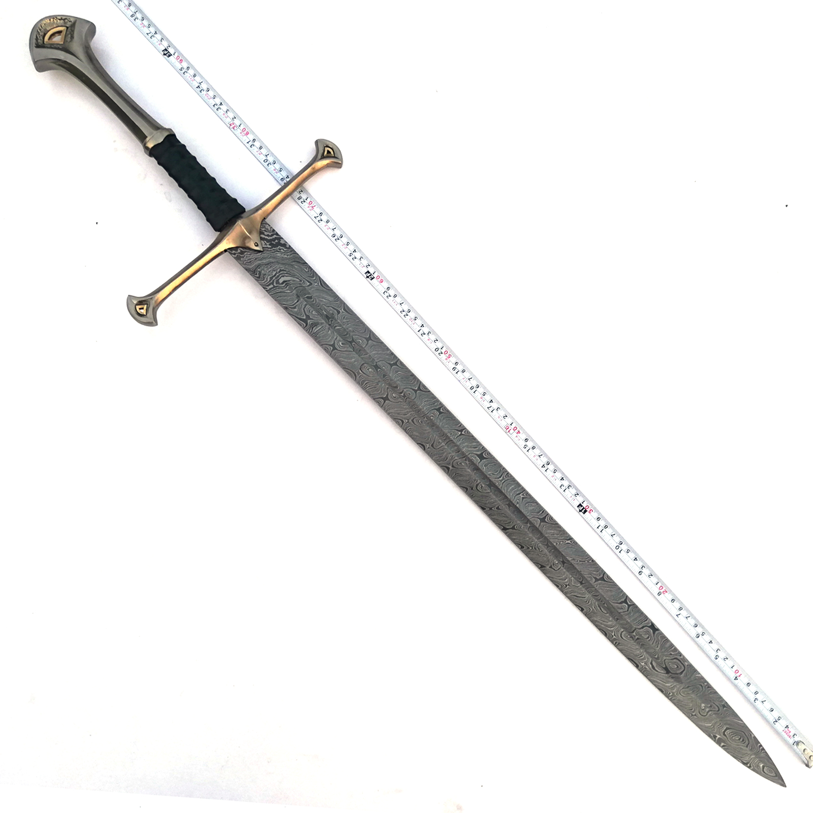 Blacksmith New Custom Made Damascus Steel Narsil Viking Sword with Leather wrap Wooden Handle