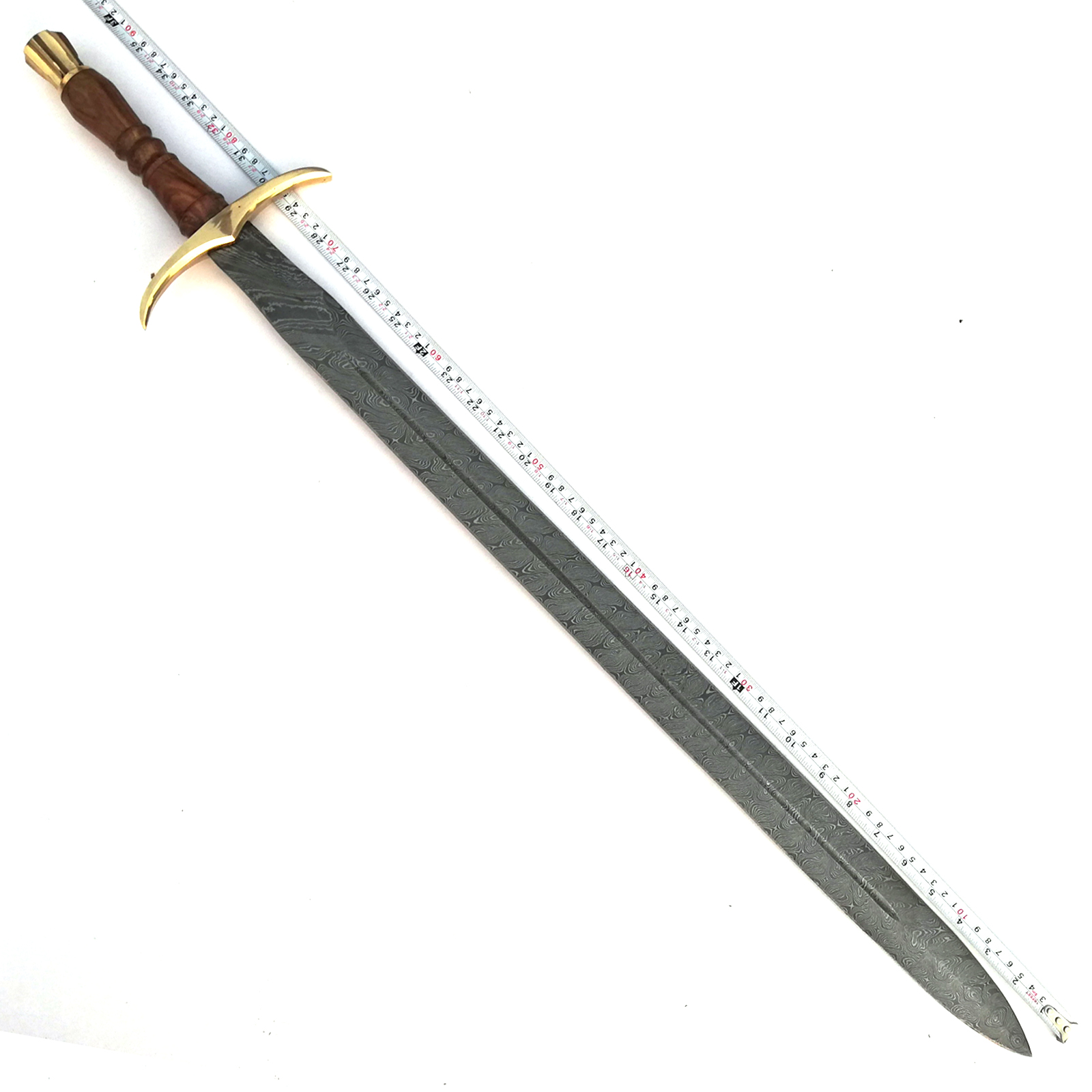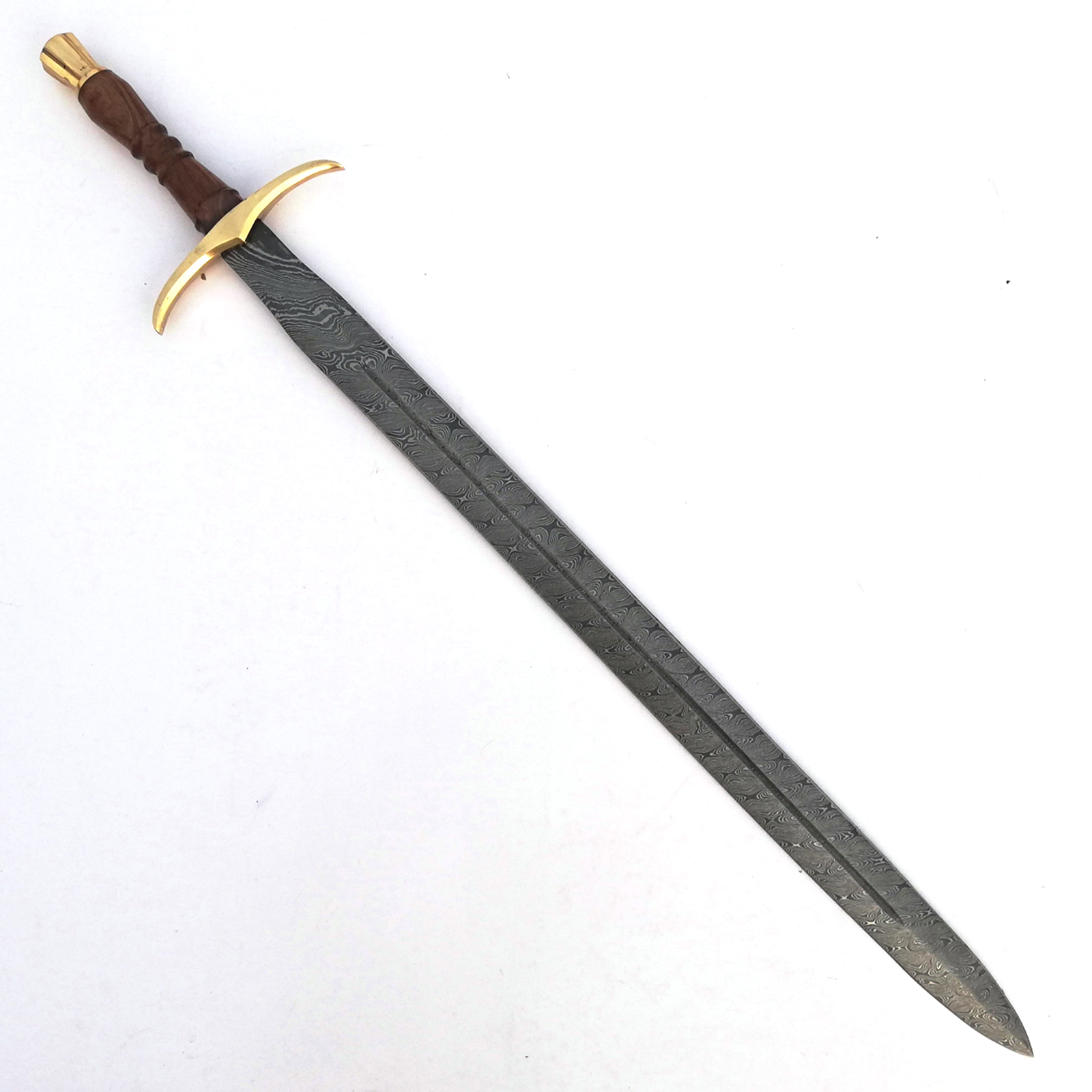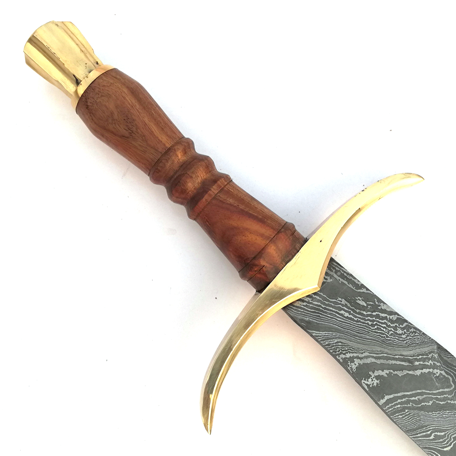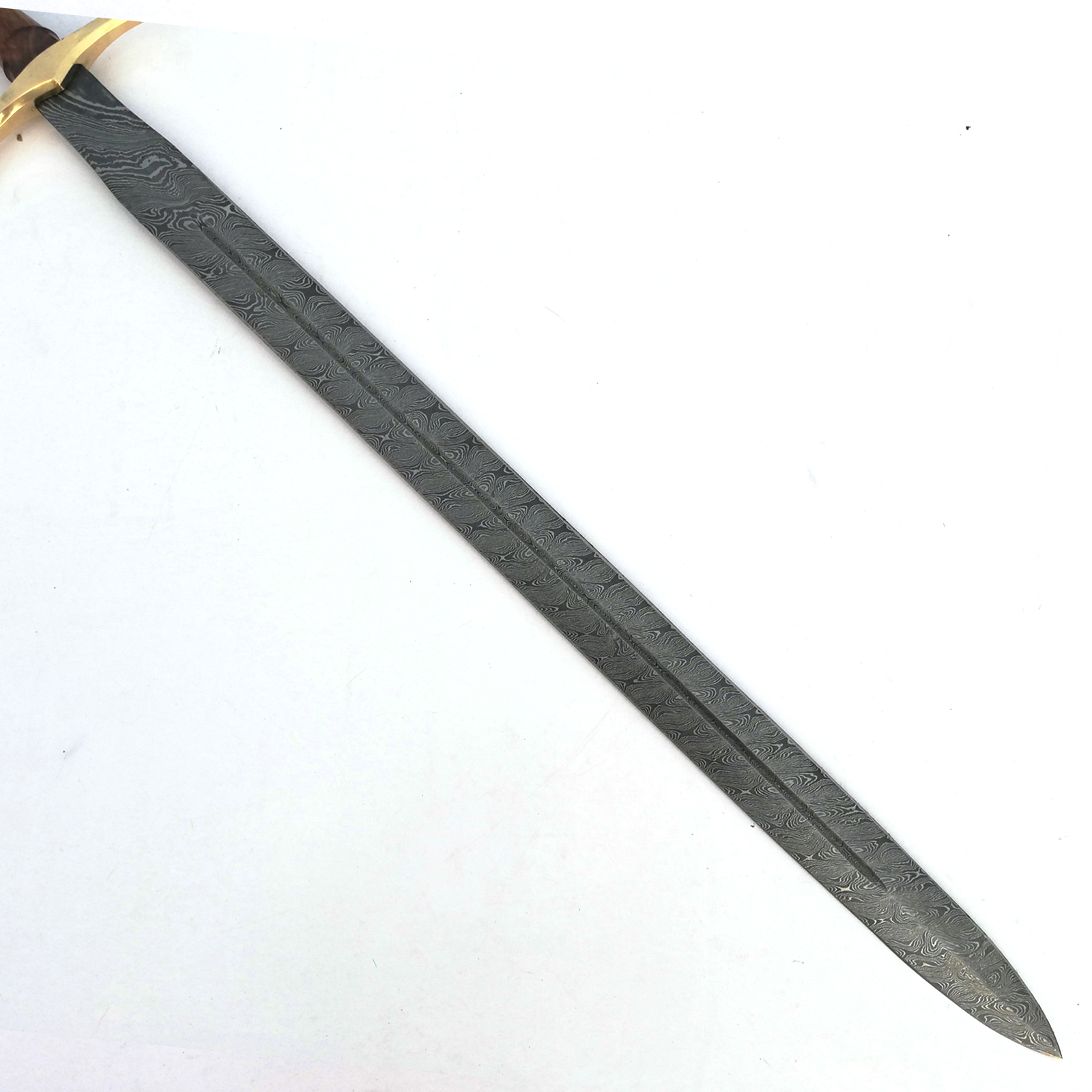 Blacksmith New Custom Made Damascus Steel Viking Sword with Wooden Handle & Brass Handsafe Guard